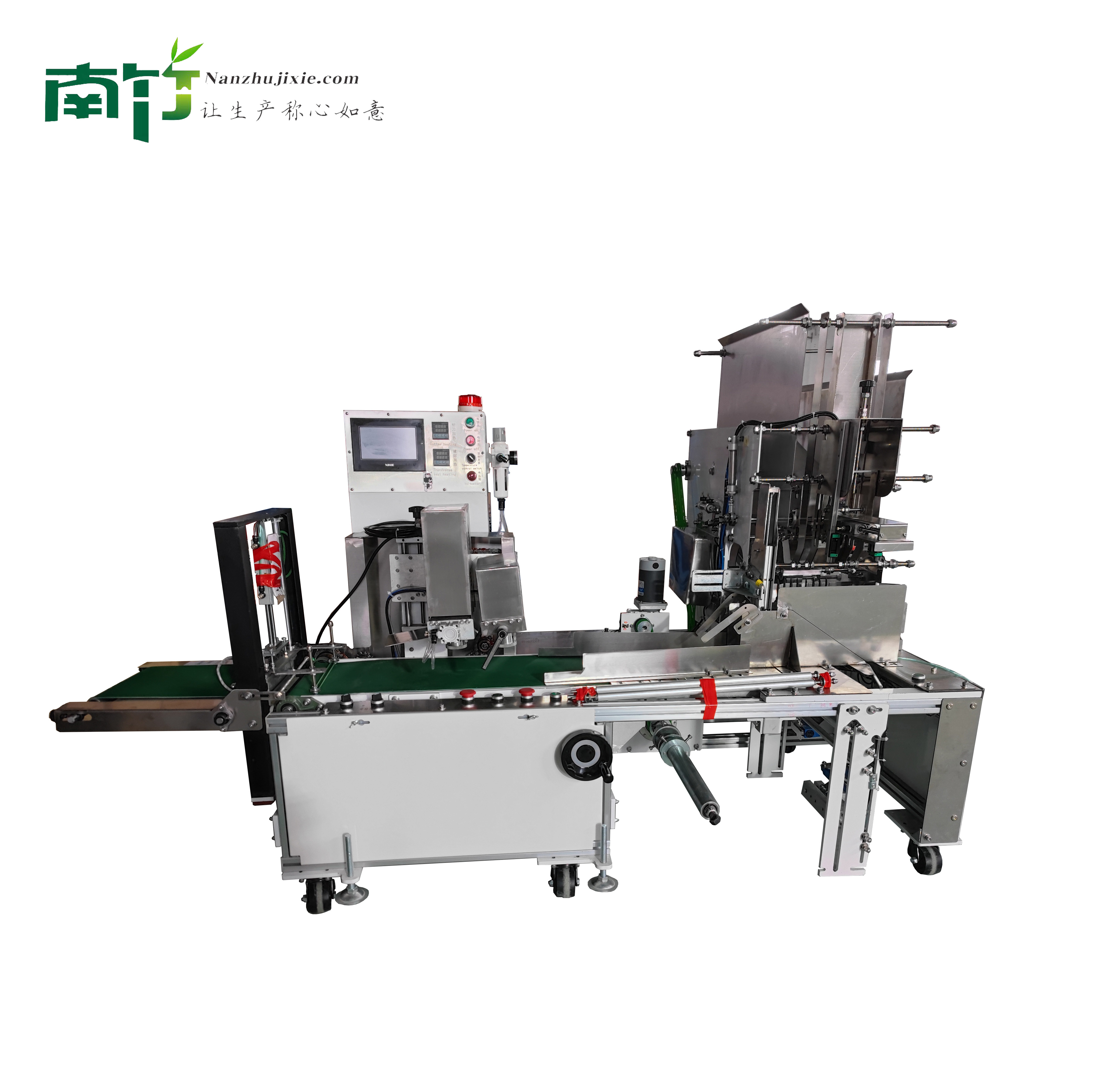 NZDZDS-G300竹签称重包装机是南竹机械出品的第一代称重包装机,目前市场上被广泛应用。设备具有稳定性好、产能高、称重准确、能耗低和自动化程度高等优点。可用于15-30公分范围内的白签和碳化签等一次性竹签的包装。在设备上设置好重量之后,设备会自动称重,然后将要求重量的竹签包成一包。所采用的零部件均由南竹设备制造厂本厂自主研发加工。一流的数控生产设备为产品的高精度要求保证了长期的稳定性。设备所使用的程序也由南竹机械自主研发,在设备升级、优化及客户特殊要求的定制机上拥有绝对主动权!本设备还拥有色标跟踪定位(对已印刷好的opp膜和淋膜纸进行色标跟踪定位)和数控调节长短(调节15-30公分范围内的竹签不需要更换齿轮刀轮)等功能,大幅度降低了工人工作时的压力。其人性化的功能更是得到行业内用户的一致好评!在售后上南竹机械拥有强大的售后团队,更是秉承初衷-让生产称心如意!